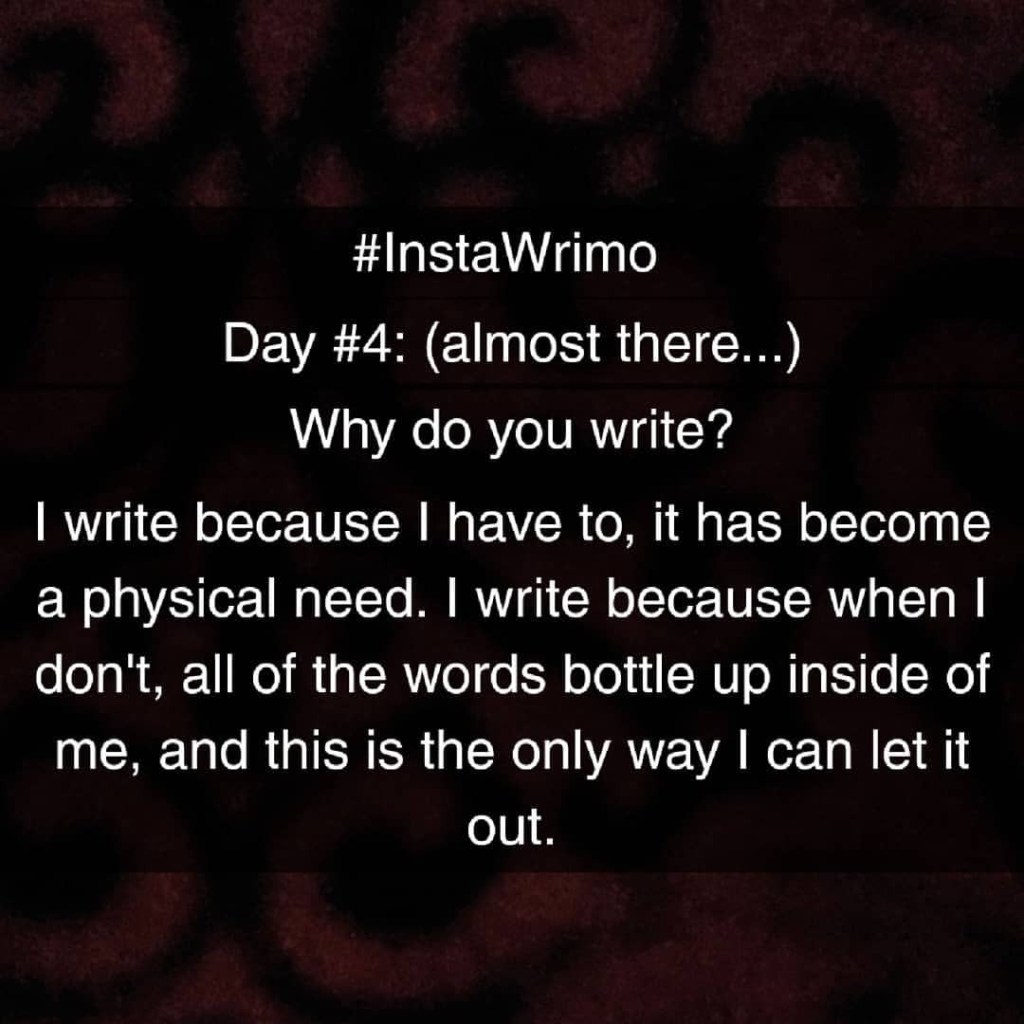 I write because I have to. It’s like a constant pressure building up inside of me that needs to be released.