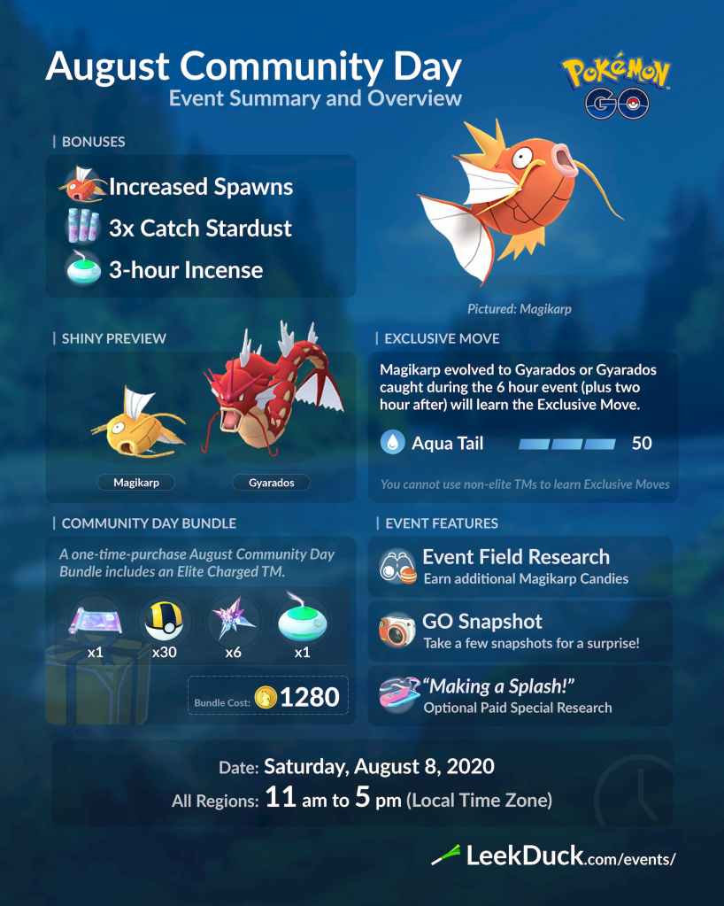 August Community Day August 8th, 2020- right smack in the middle of the Ultra Unlock weeks!