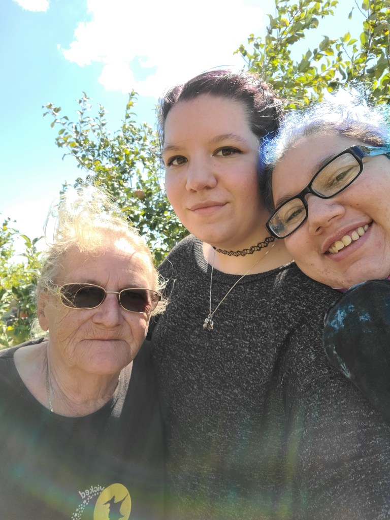 You see, while I haven’t posted much this past week, it isn’t because I’m too lazy or whatnot. I’ve simply been busy trying to make this last week count. This past Saturday, Angel, my grandmother and I were supposed to go raspberry picking at a local farm. Unfortunately, by the time we got there around noon, all of the raspberries were already picked out, so we had to find something else to do. That something else wound up turning into one of the things we’d originally wanted to do- apple picking.
