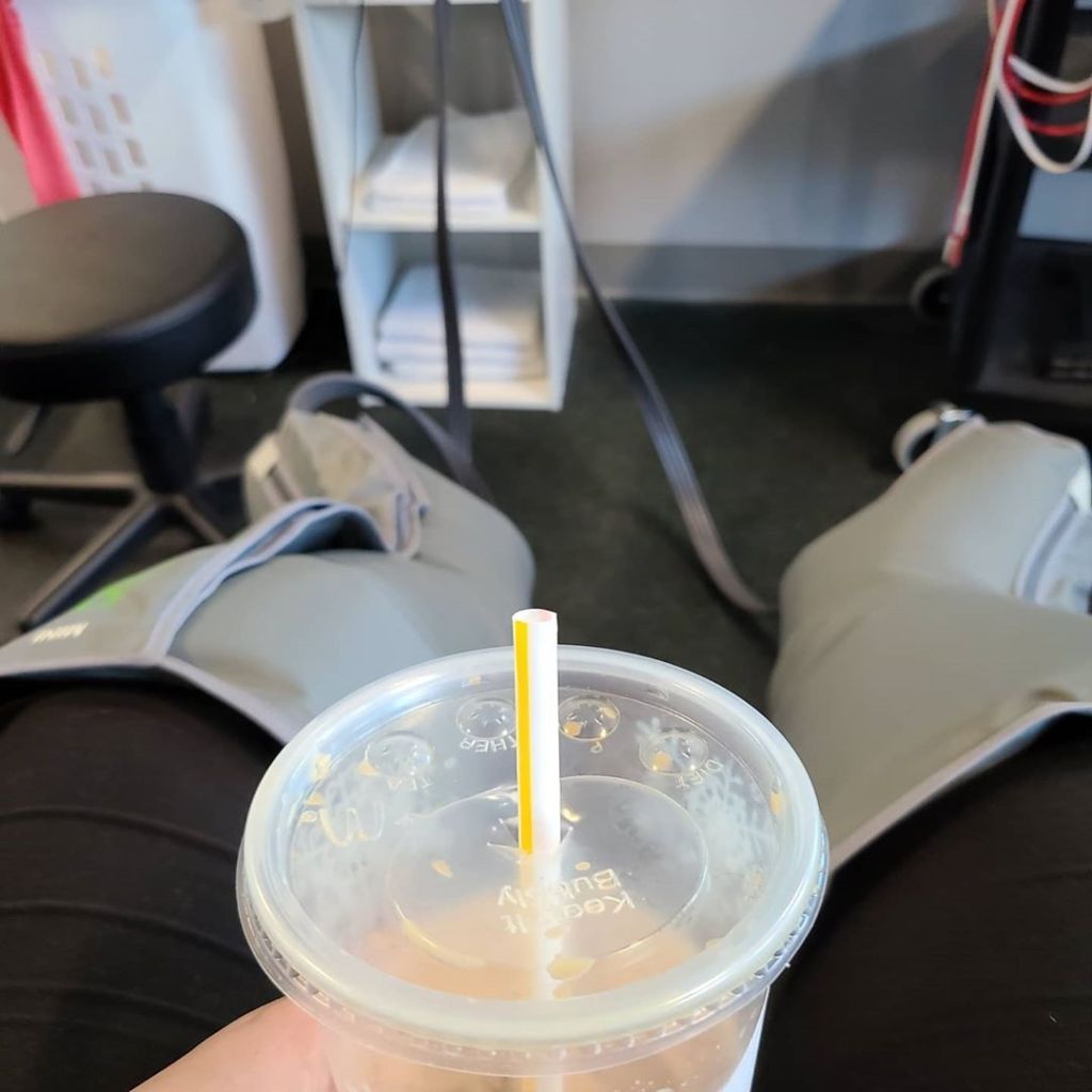 Today my coffee is being had during physical therapy.