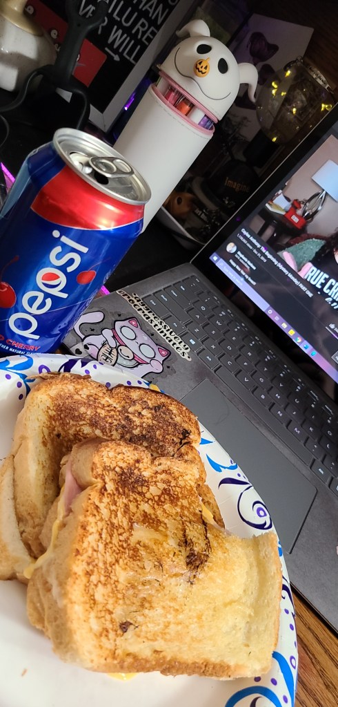 As for now? I’m sitting at my desk with an ice pack on my ankle, hoping the swelling goes down, and my toe stops being purple. I also have a grilled cheese sandwich, which has become my go-to “comfort food” lately. Why? I don’t know. But, I feel like everyone goes through having a safe food or a comfort food, especially when there’s a lot going on in their life. Pair that with listening to one of my favorite true-crime Youtuber’s and I guess we’re calling this self-care. Who knows, I might even get some writing done.