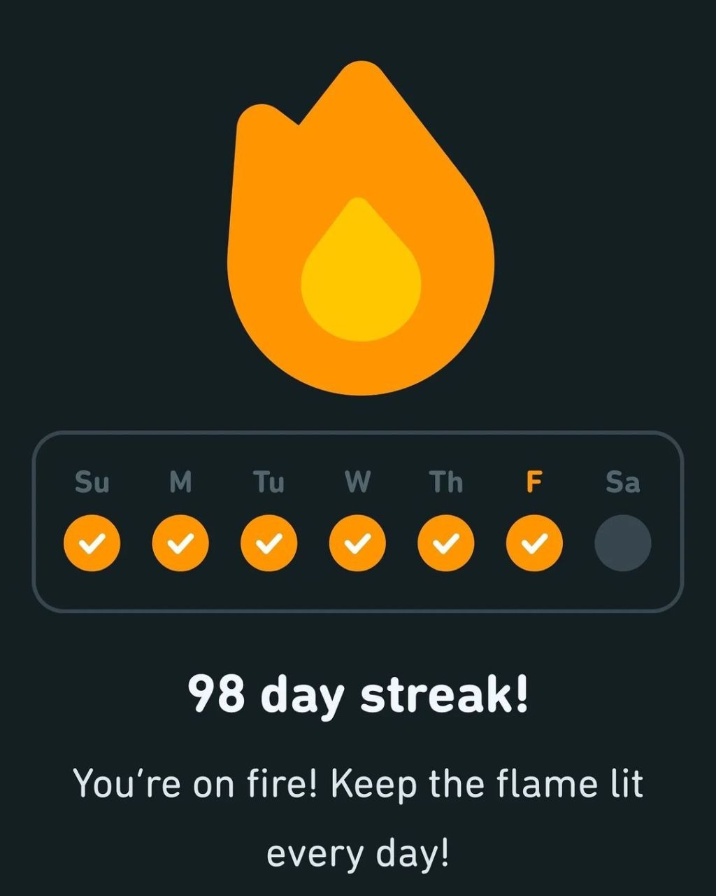 Laying in bed trying to heal from surgery on Wednesday, and so I decided to do some Duolingo practice. 98-Days!
