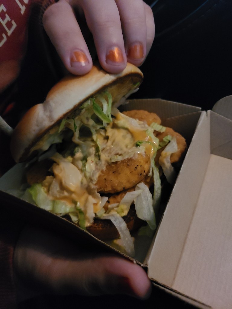 Angel got the Kung Pow Chicken sandwich from China. It was crispy, crunchy, a little spicy and the sauce was to DIE for. To the point where I would be willing to buy a bottle of that sauce to put on legitimately everything; burgers, fries, nuggets, stir fry. Literally everything. We would definitely love to have it again.