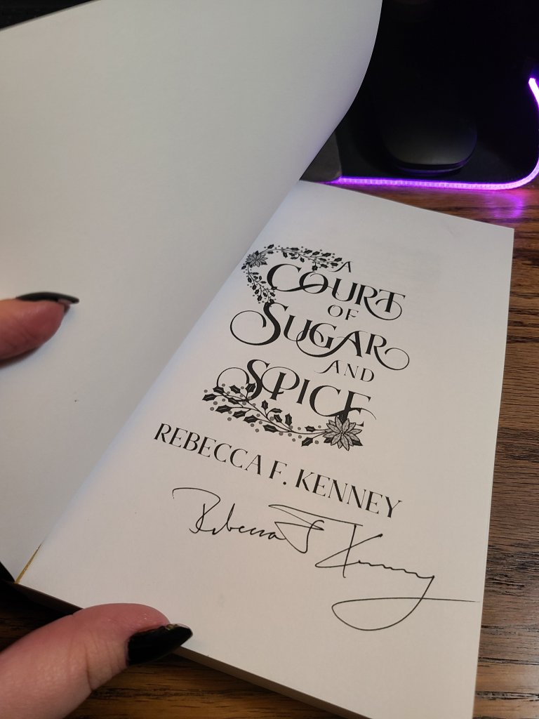 If you follow me on TikTok, then you probably already know that I got my first ever book mail, and from one of my favorite authors, Rebecca F. Kenney. Her books, such as Hades, and the Sea Witch retelling on Kindle Valla (which comes out as a whole book on the 26th! Yay!) are some of my absolute favorite reads of all time. Both of which, I will be writing a whole set of reviews on, and posting here, Amazon, and Goodreads, as always in the very near future. However, I don’t want to talk about those stories today because, I want to talk about A Court of Sugar and Spice!