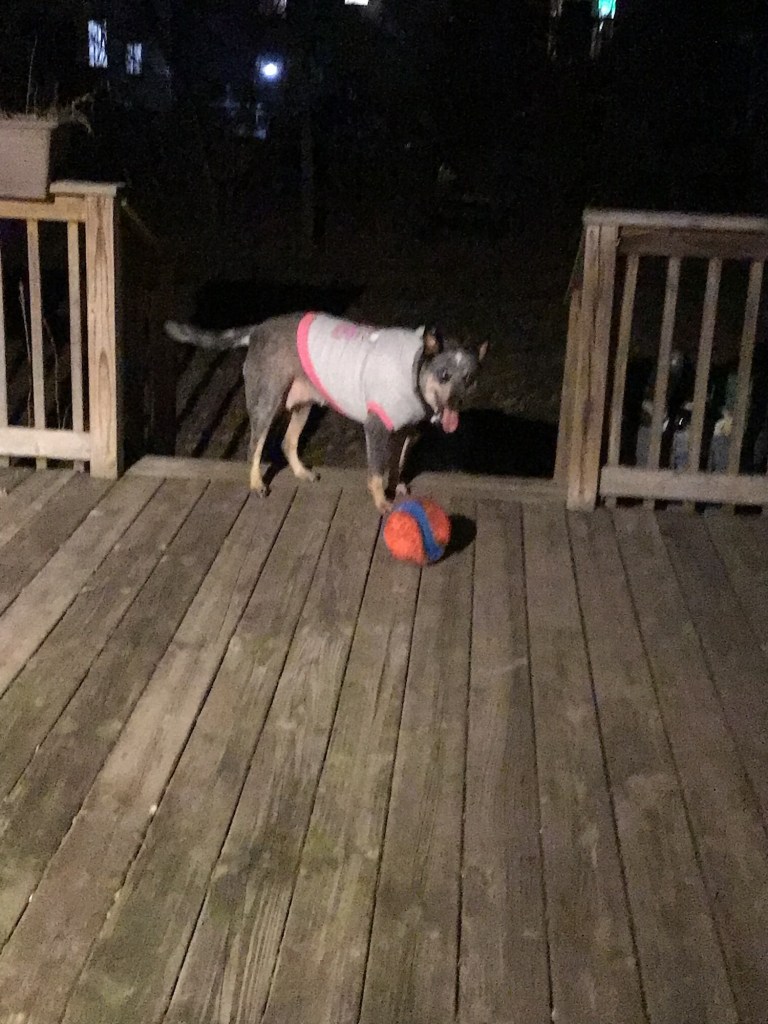 Even in the cold, she got ball time between dramatic zooms. She got puffed yak cheese chews. Salmon skins. Couch compression therapy.