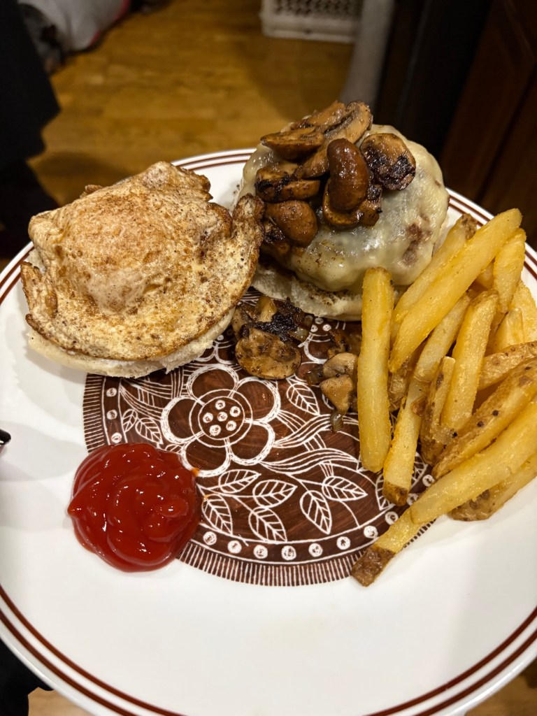 By “we,” I mean M&M made the patties, because she makes them the same way she makes her meatballs. Which means they are technically giant meatballs cosplaying as burgers. And honestly? Elite behavior.