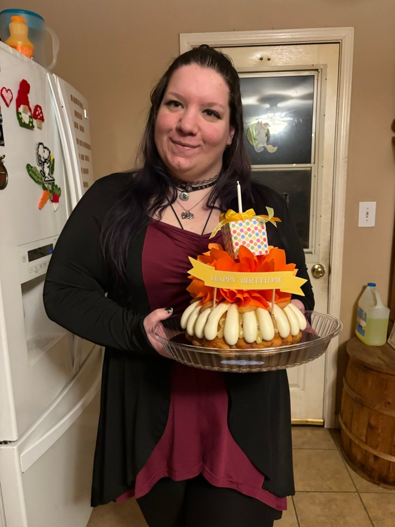 My Aunt Dee in Texas had a Banana Pudding cake delivered from Nothing Bundt Cakes, which felt like long-distance love showing up in frosting form. I talked to Aunt Lise in the morning. Familiar voices. The kind of birthday that feels anchored.