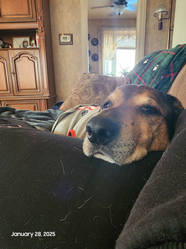 Bear (April 2012āOctober 28, 2025) may have crossed the Rainbow Bridge, but he will always be the elder cryptid of this household and the keeper of our hearts. For 13 years, he patrolled fences, trucks, boats, and any suspicious trailer that dared near our home- but always returned to his true loves: cheese, naps, and his beloved dinosaur ābabies.ā Each human holds one close- Sky with the purple one, the Yard Yeti with the two little reds, and M&M with the tiny Christmas dino- and through them, his watchful, slobbery hugs live on.